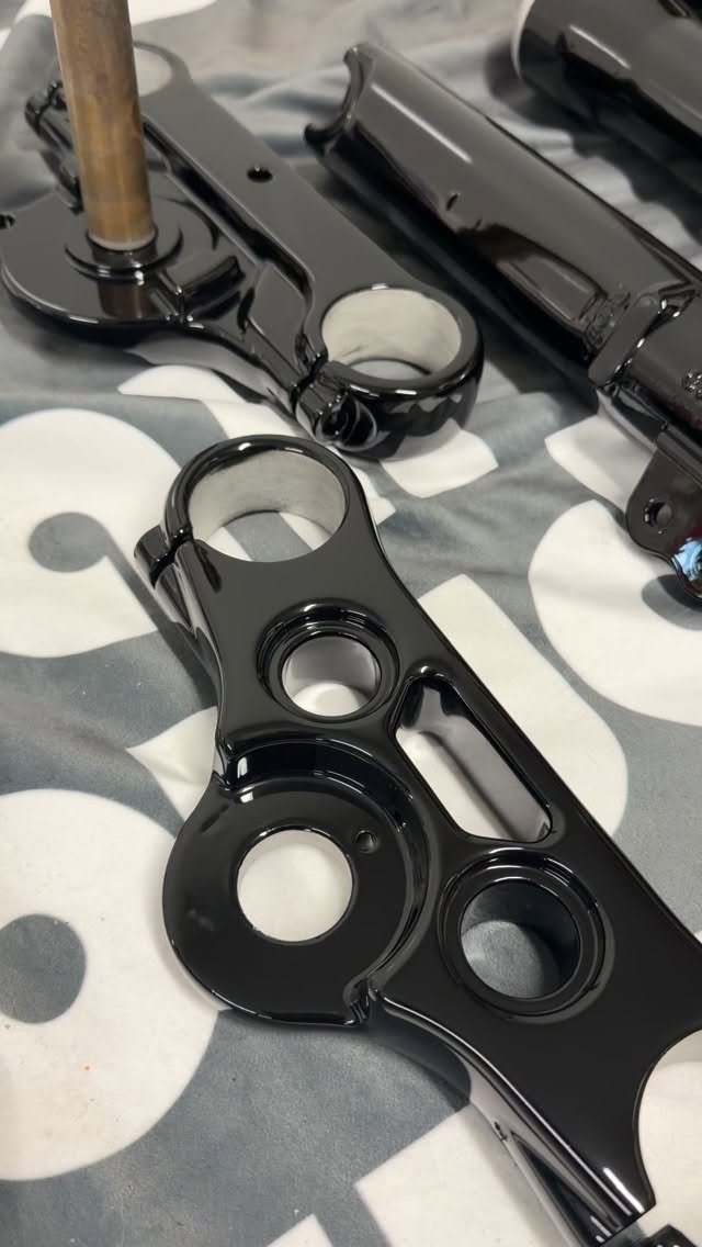 When you drop off your parts, we’ll go over color samples with you or even shoot a custom sample panel so you can get eyes on the final finish. We stock a lot of swatches. If we don’t have it, we’ll order the swatch for free. 20% down is required at drop off for some custom colors.