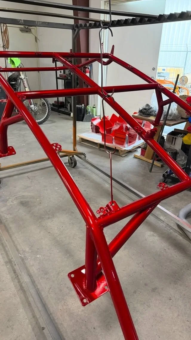 The curing process involved heating the parts to 400 degrees for 10-20 minutes. The dry powder melts and cures to it’s final strength during this time. Multiple coats are partially cured to ensure each coat of powder cures together for years of strength, color fastness, and corrosion protection.